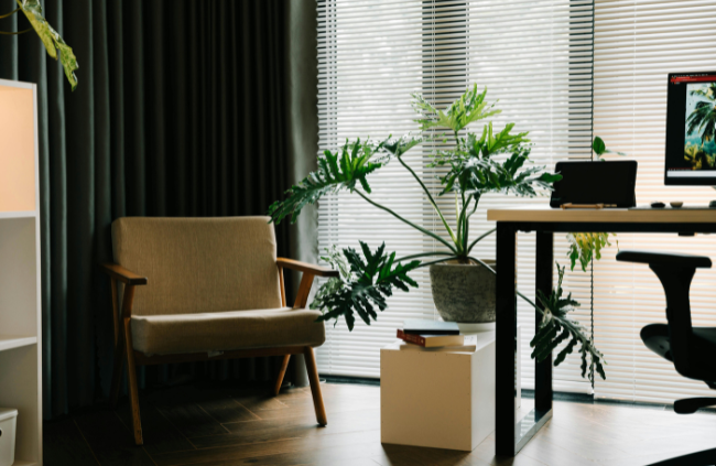 การใช้กล่องเก็บเอกสารแบบมินิมอลหรือถาดไม้สำหรับจัดระเบียบเครื่องเขียนจะช่วยให้โต๊ะทำงานดูสะอาดตาตลอดเวลา การเพิ่มของตกแต่งที่มีความหมายส่วนตัว เช่น รูปภาพครอบครัวหรือรางวัลที่ภาคภูมิใจ จะช่วยเพิ่มพลังบวกและแรงจูงใจในการทำงาน การเลือกใช้ม่านปรับแสงแบบโปร่ง (Sheer Curtains) จะช่วยกรองแสงแดดไม่ให้ส่องเข้าหาจอคอมพิวเตอร์โดยตรงและยังคงความสว่างจากธรรมชาติไว้ได้ มอบความรู้สึกที่ไม่อึดอัดและช่วยให้บรรยากาศในการทำงานที่บ้านมีความเป็นส่วนตัวและเป็นระบบมากขึ้น
